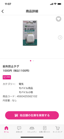 ダイソーは、「紛失防止タグ」を販売している。価格は1,100円。