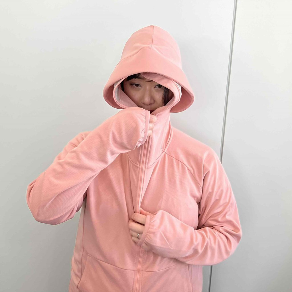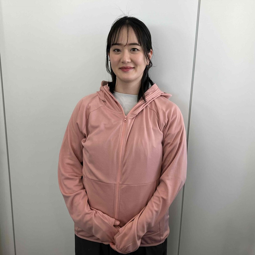 「サンシェードパーカーEXは日焼け対策を高めた商品で、機能性とデザイン性のバランスもとりました。例えば、帽子のサンバイザーのようなツバが立つフード付きにして、ツバを引っ込めた場合のフードの見せ方にもこだわりました。