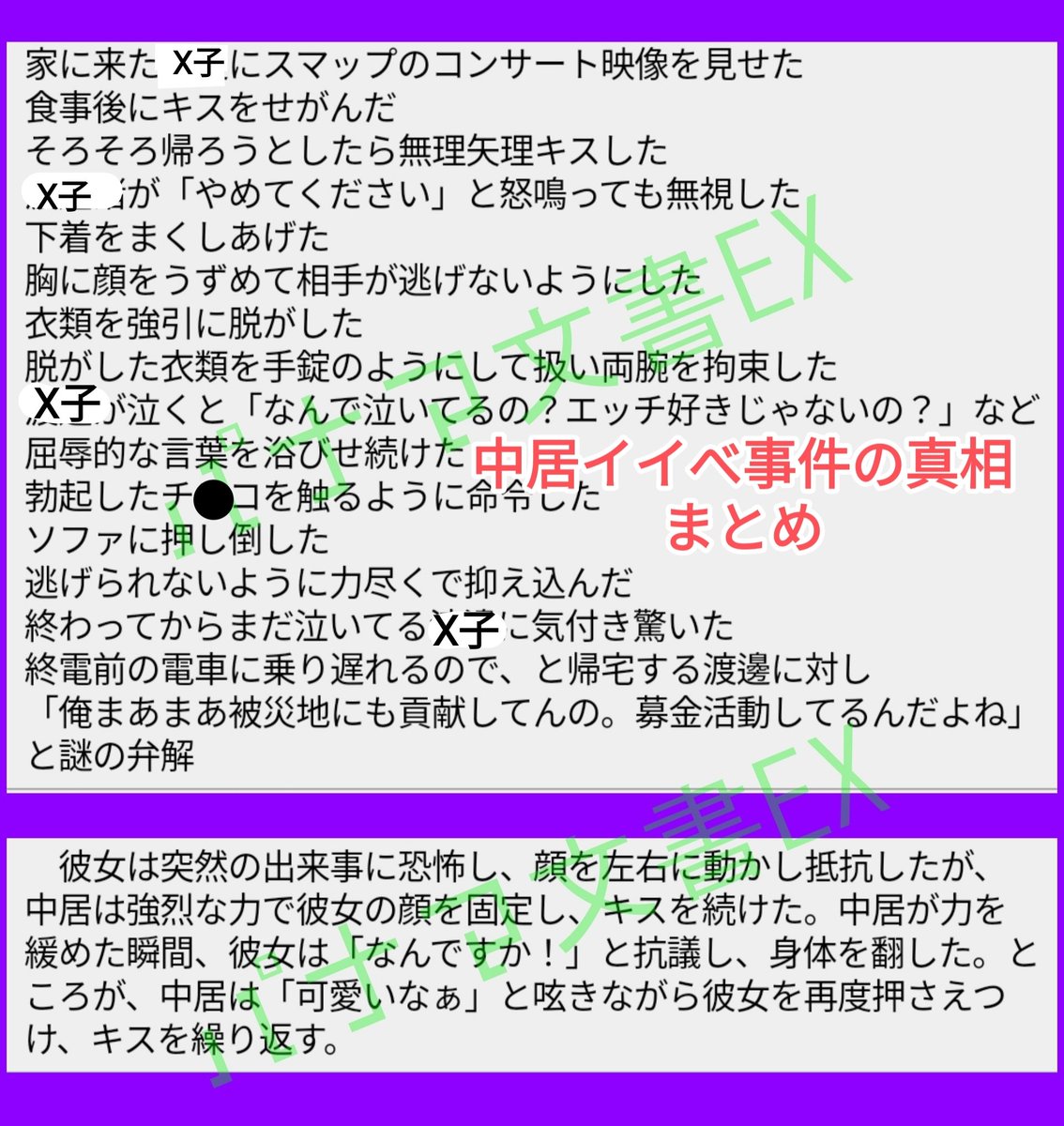 中居側の言っていた「WHOの性暴力の定義がおかしいのであって一般的に性暴力という言葉から想起されるような行為はなかった」みたいな言い分は何だったんだろう
