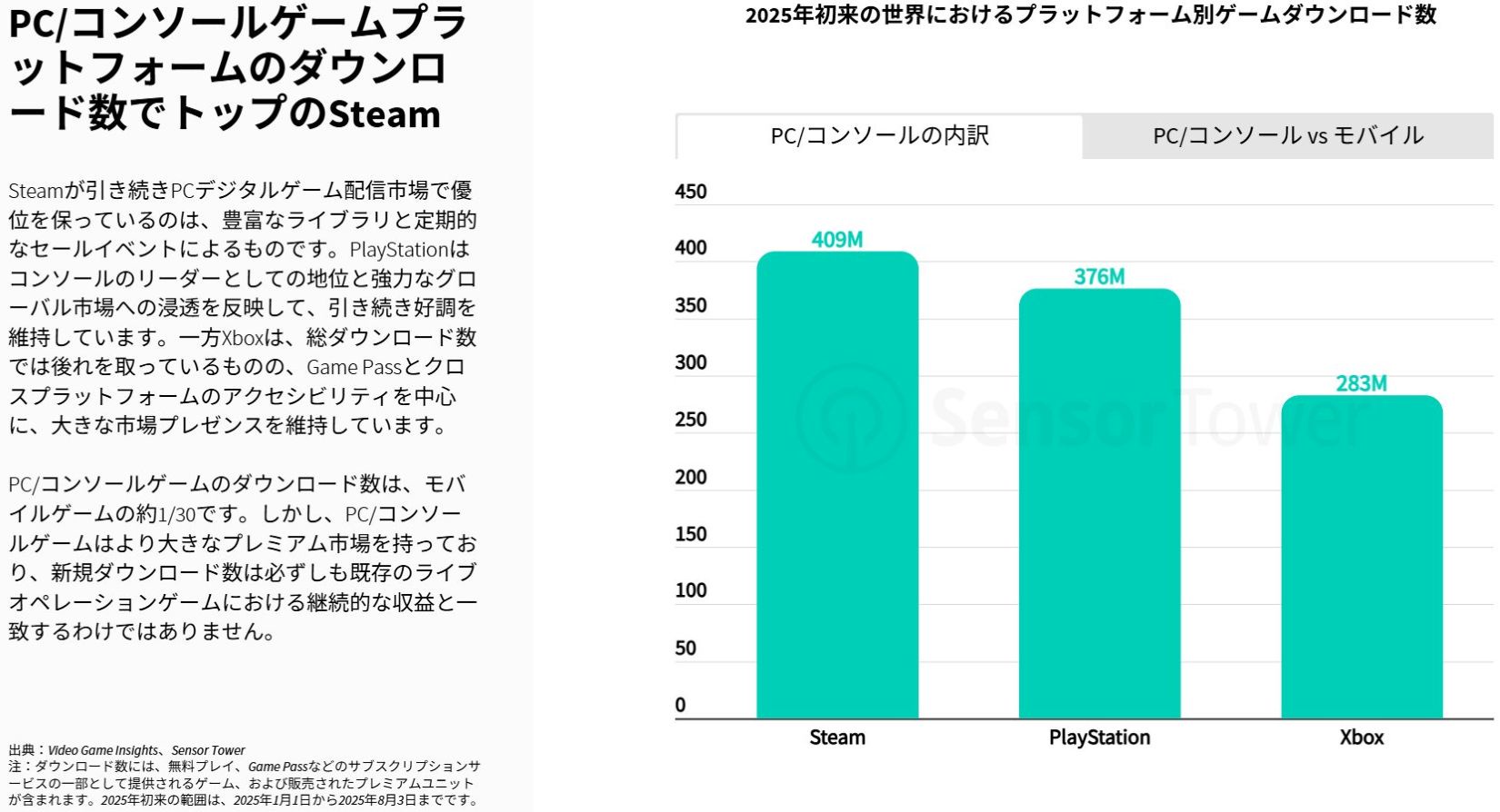 sensor tower(1月~8月)3億7600万本(フリプ込み)