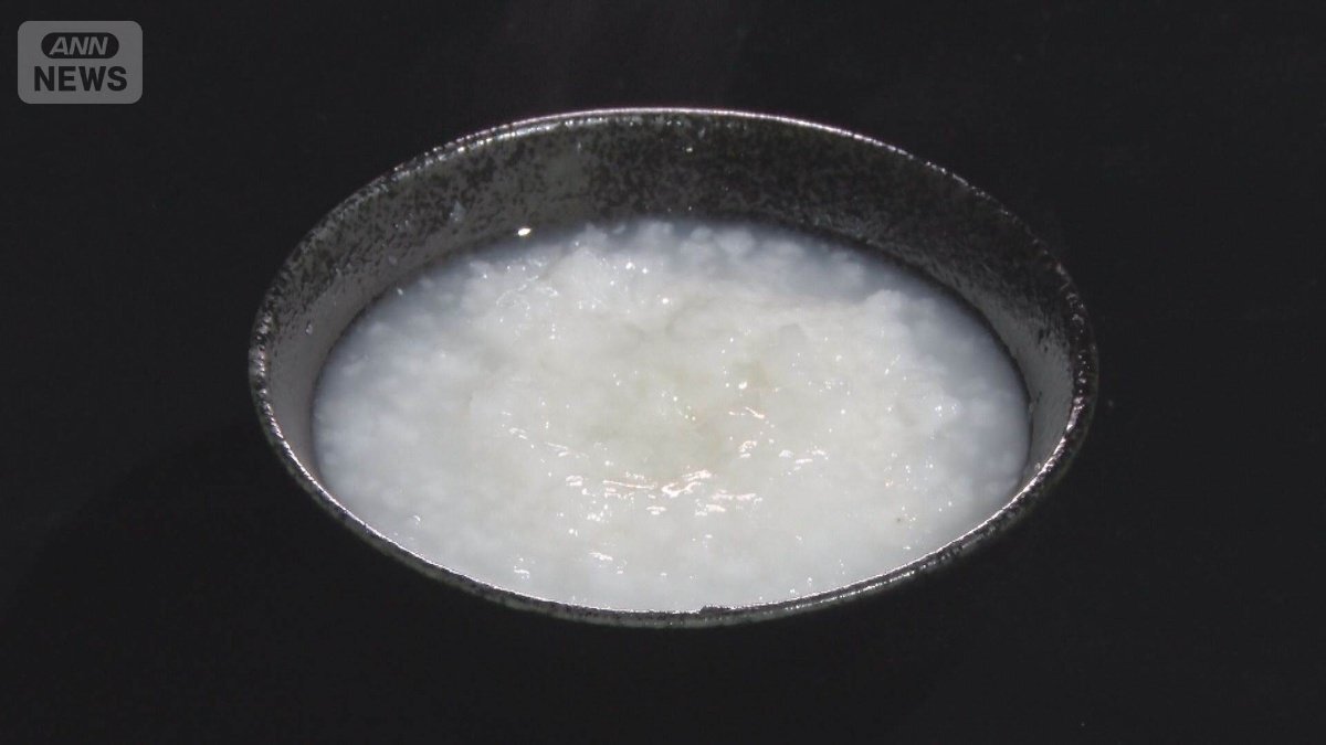 「(おかゆは)かむということに関しては、あまりかまなくてもいいぐらい柔らかいんですけど、その分、水分量が多いので水と米が分離しやすい。水分が先に喉から食道の方にストンと流れていって、その米の部分だけ喉のところにたまるということが起こりやすい」