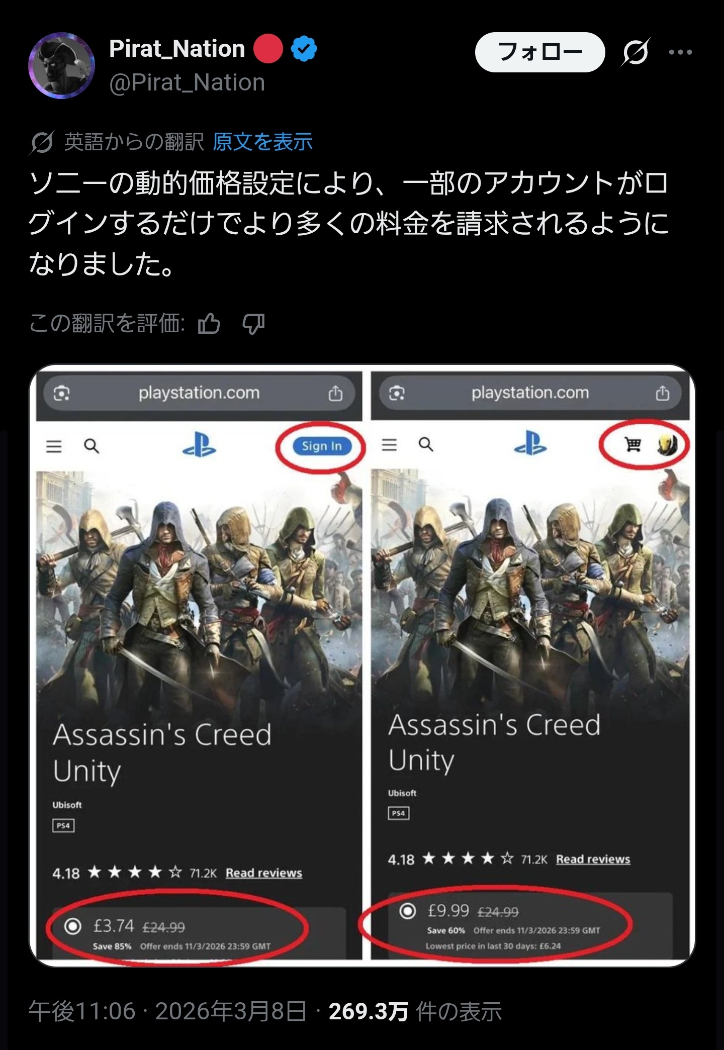 同じゲームが異なる価格で表示される状況に陥ってしまうようだ。