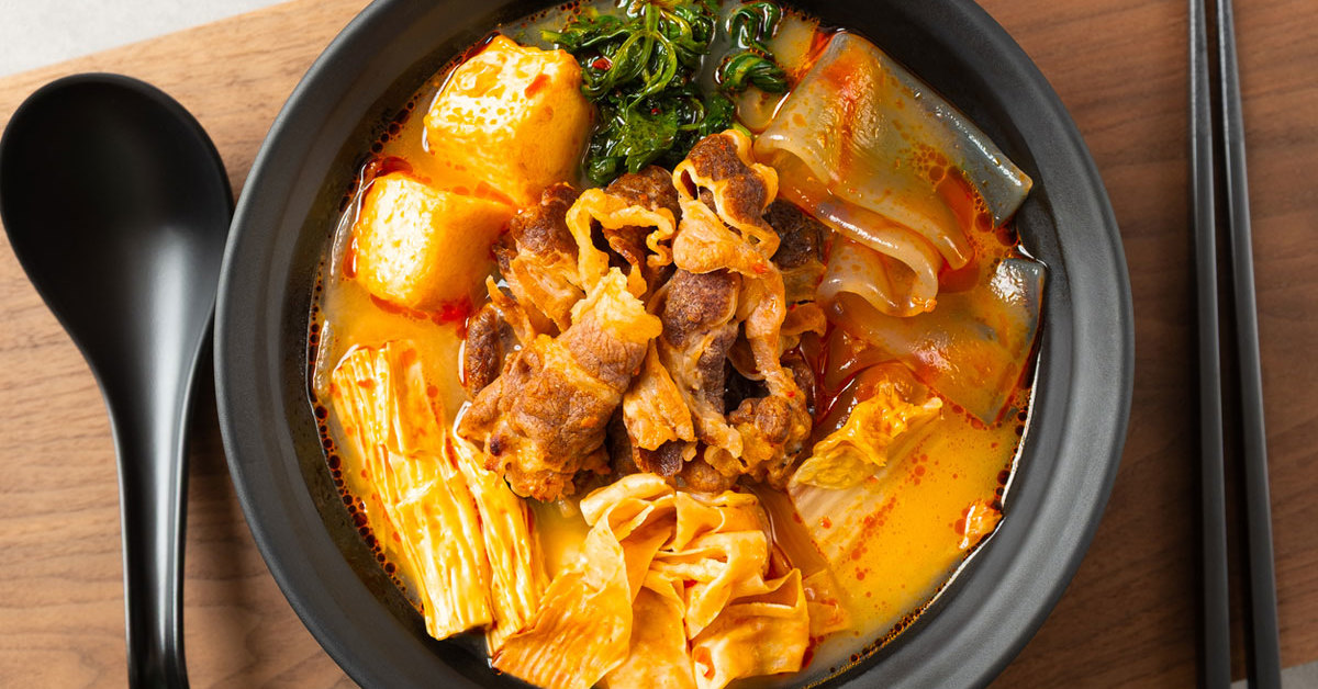 辛さのレベルやスープの種類は自分で選べるので、辛いのが苦手な人は牛骨スープなどにすることもできる。
